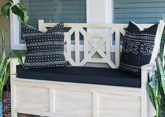 We love this homemade outdoor storage bench from Jen Woodhouse .